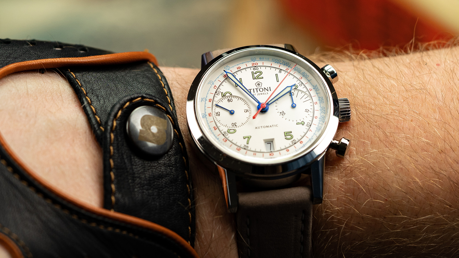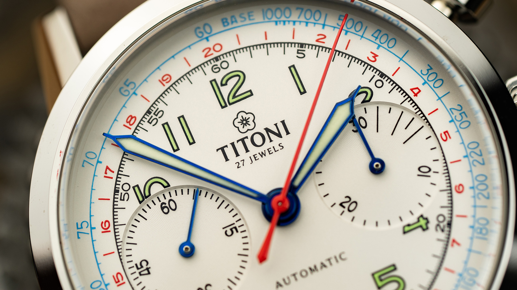 Mehr als 70 Jahre sind seitdem vergangen - für Titoni war dies Grund genug, die Traditionmit dem Heritage-Chronographen wieder aufleben zu lassen. Liebevoll hat man einenmodernen Nachfolger geschaffen, der sich eng an den Originalmodellen orientiert. So sind dieZeiger in identischer Kathedralenform gehalten, und das Zifferblatt erinnert an die über die Zeit entwickelte schöne Patina der Vintage-Chronographen.